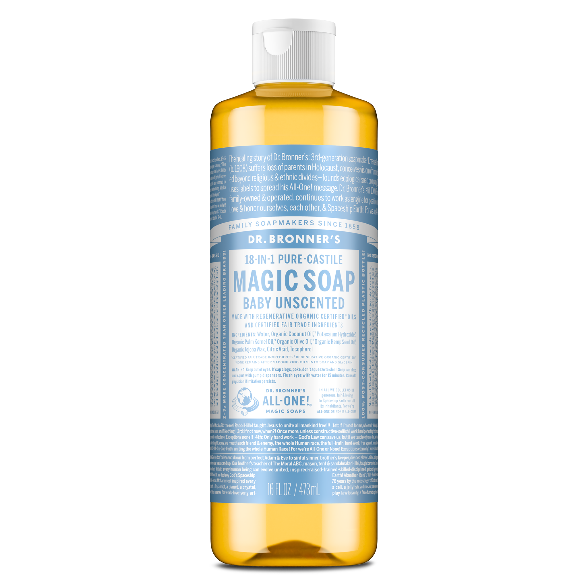 Our Pure-Castile Liquid Soaps are made from plant-based oils and contain no synthetic detergents or foaming agents. These soaps are EWG Verified®—meeting the Environmental Working Group’s strictest standards for health and safety! Our soap is shown to be readily biodegradable under the stringent testing conditions utilized pursuant to OECD Guideline 310. Packaged in a 100% post-consumer recycled bottle.