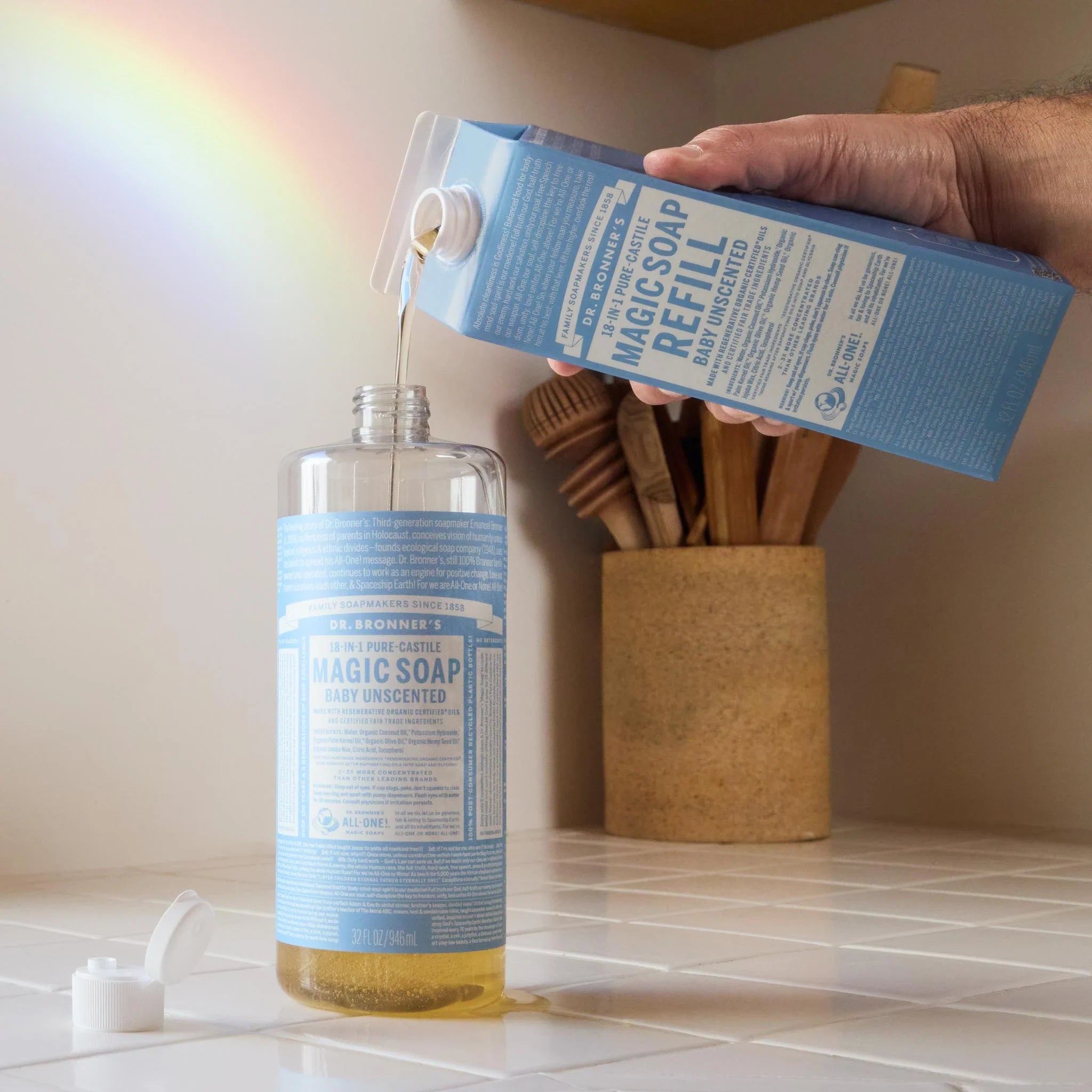 Dr. Bronner’s lathers up for a refreshing clean—and goes far beyond the shower! Use for: